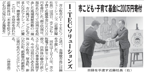 の苫小牧市の発展を応援したいという思いから、寄付という形でお届けしました。